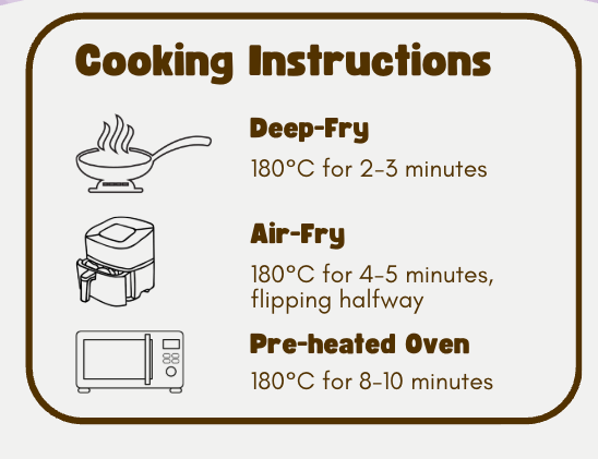 Deep-Fry: 180C for 2-3mins